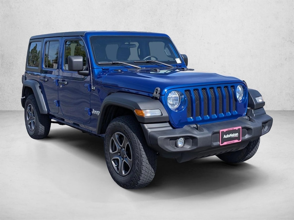This outstanding example of a 2018 Jeep Wrangler Unlimited Sport is offered by AutoNation Subaru Roseville. This Jeep includes: TRANSMISSION: 8-SPEED AUTOMATIC (850RE)8-Speed A/T Transmission w/Dual Shift Mode A/T BLACK 3-PIECE HARD TOPTarga Roof Rear Defrost Convertible Hardtop OCEAN BLUE METALLIC CLEARCOATWHEELS: 17"Aluminum Wheels QUICK ORDER PACKAGE 24SAutomatic Headlights Driver Vanity Mirror Passenger Vanity Mirror Aluminum Wheels Power Mirror(s) Power Windows Privacy Glass Heated Mirrors Security System Leather Steering Wheel Power Door Locks Keyless Entry Passenger Illuminated Visor Mirror Driver Illuminated Vanity Mirror ENGINE: 3.6L V6 24V VVT UPGV6 Cylinder Engine Gasoline Fuel BLACK, CLOTH LOW-BACK BUCKET SEATSCloth Seats Bucket Seats SAFETY GROUPRear Parking Aid Blind Spot Monitor Cross-Traffic Alert TIRES: 245/75R17 ALL TERRAINTires - Rear All-Terrain Tires - Front All-Terrain TECHNOLOGY GROUPSmart Device Integration A/C Climate Control AM/FM Stereo Satellite Radio Bluetooth Connection *Note - For third party subscriptions or services, please contact the dealer for more information.*Gone are the days of SUVs being the size of a tank and handling like one. This Jeep Wrangler Unlimited is a perfect example of how SUVs have evolved into vehicles that are as refined as they are rugged. Simply put, this Four Wheel Drive is engineered with higher standards. Enjoy improved traction and safety while driving this 4WD Jeep Wrangler Unlimited Sport.With less than 74,114mi on this Jeep Wrangler Unlimited, you'll appreciate the practically showroom newness of this vehicle.
